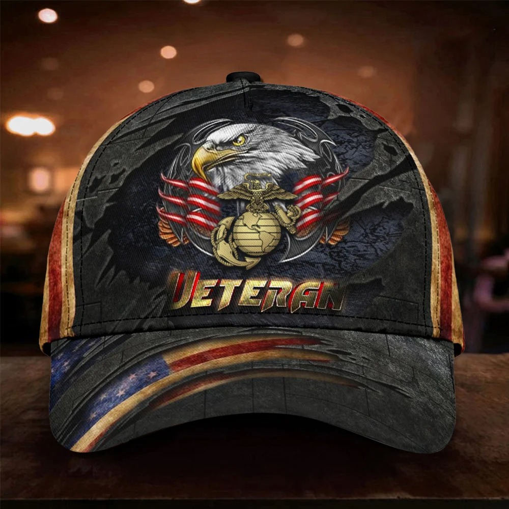 Eagle US Marine Corps Veteran USA Flag Hat Logo USMC Veteran Patriotic Hats Merch