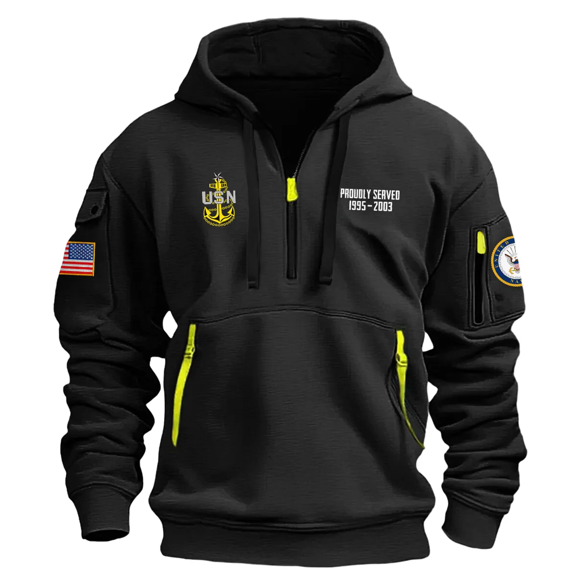 Introducing New Release! Personalized Gift SCPO U.S. Navy Fashion Hoodie Half Zipper BLVTR230524A02NV4 our latest addition: the Long Sleeve Hooded Quarter Zip Hoodie. Crafted with comfort and style in mind, this hoodie offers the perfect blend of warmth and coverage for any occasion.