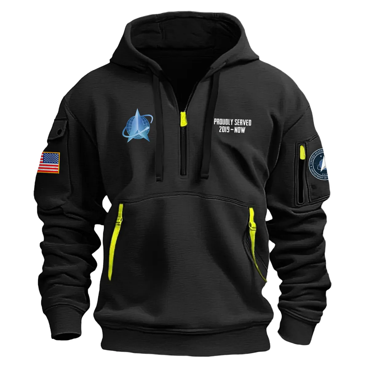 Introducing New Release! Personalized Gift U.S. Space Force Fashion Hoodie Half Zipper BLVTR290524A02SF4 our latest addition: the Long Sleeve Hooded Quarter Zip Hoodie. Crafted with comfort and style in mind, this hoodie offers the perfect blend of warmth and coverage for any occasion.