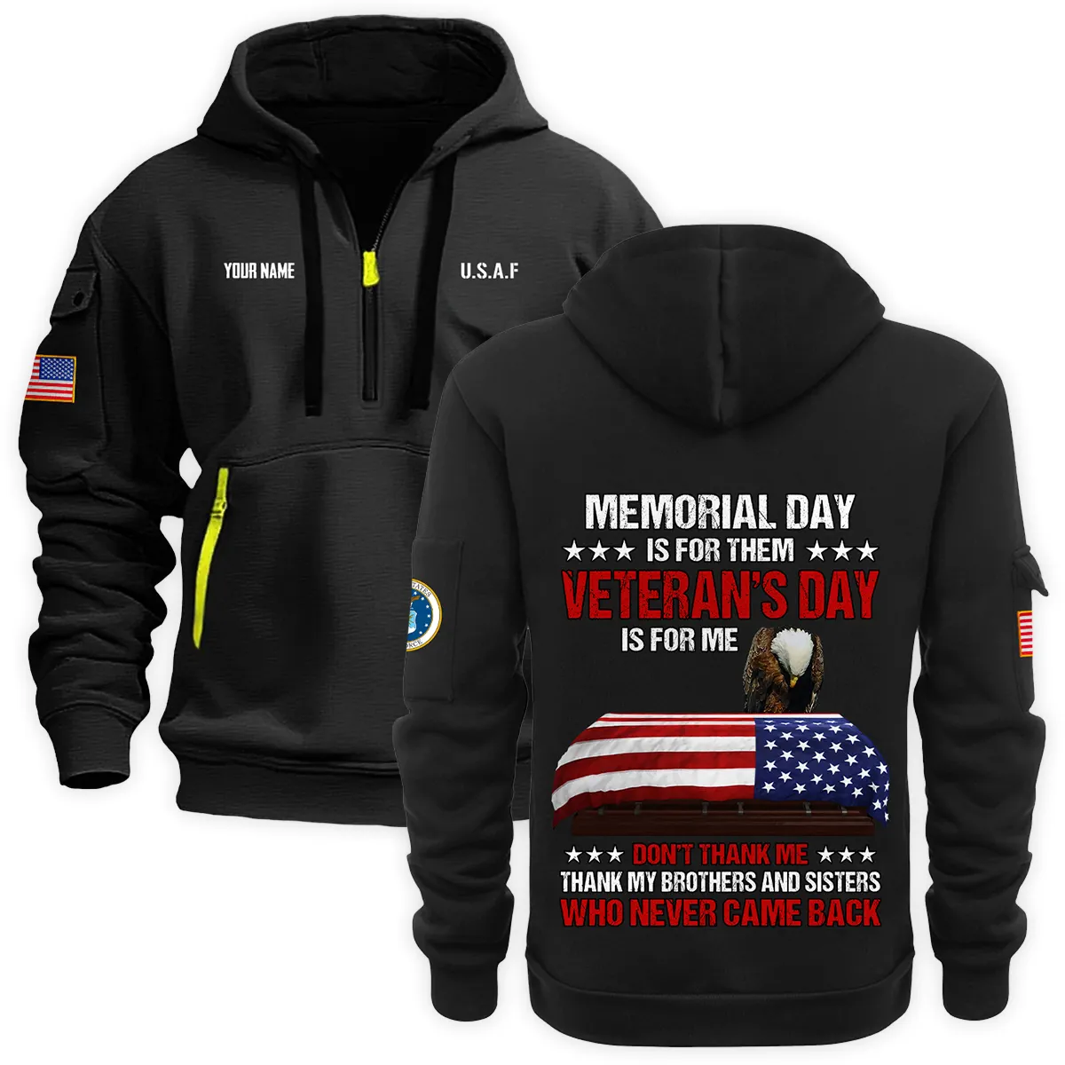 New Release Personalized Name U.S. Air Force Veteran Hoodie Half Zipper HBLVTR090424A03AF