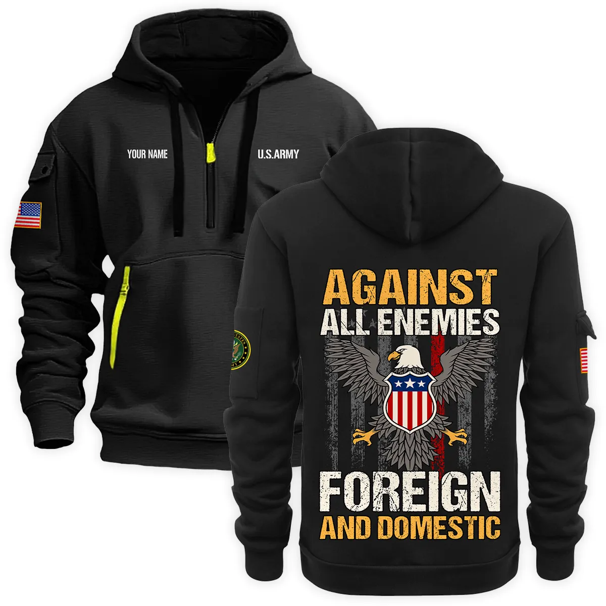 New Release Personalized Name U.S. Army Veteran Hoodie Half Zipper HBLVTR100424A01AM
