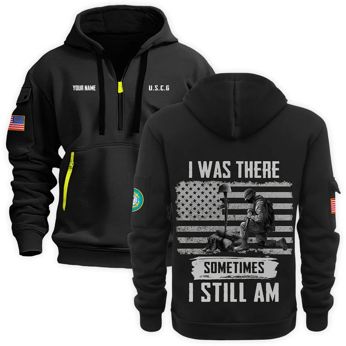 New Release Personalized Name U.S. Coast Guard Veteran Hoodie Half Zipper HBLVTR090424A04CG