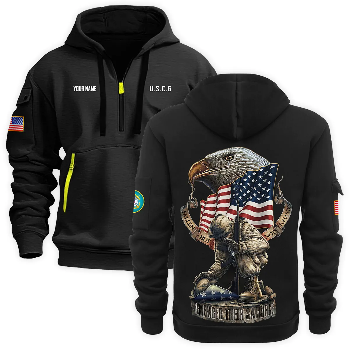 New Release Personalized Name U.S. Coast Guard Veteran Hoodie Half Zipper HBLVTR100424A05CG