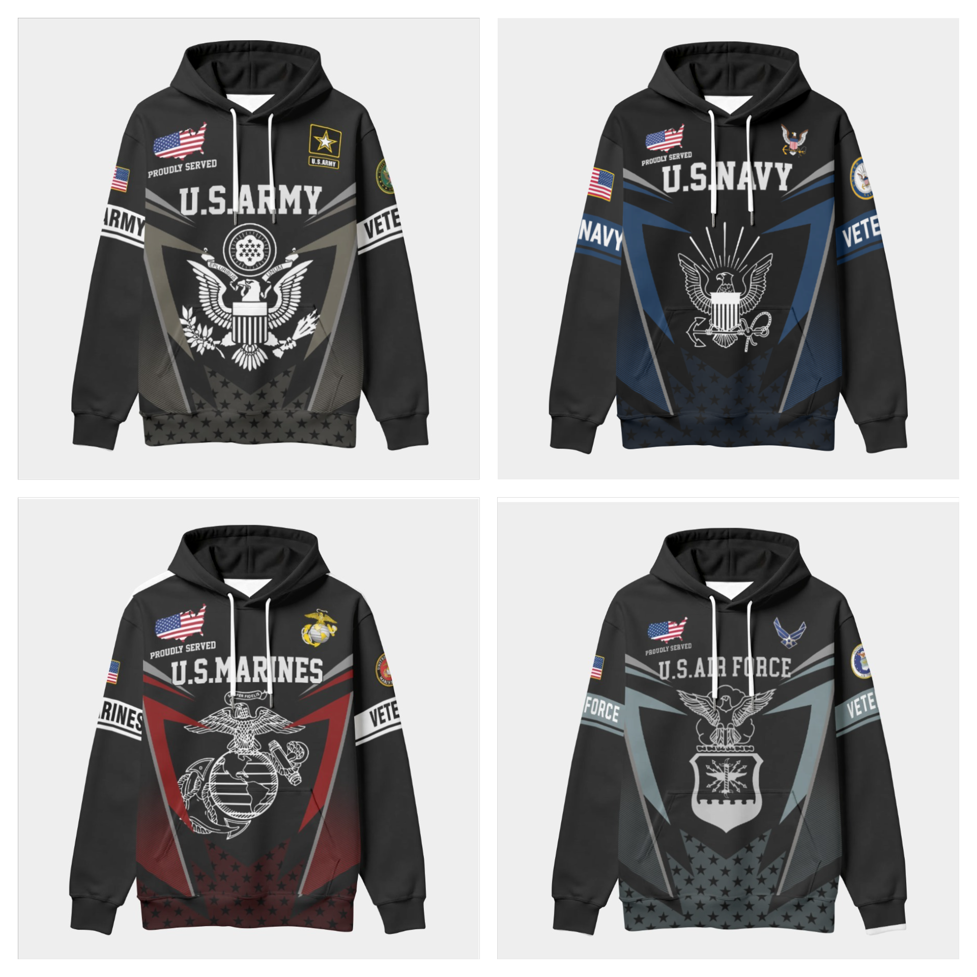 New Release U.S. Veterans Premium Hoodie Shirt All Over Prints Gift Loves – Logo of the military branch can be customized.