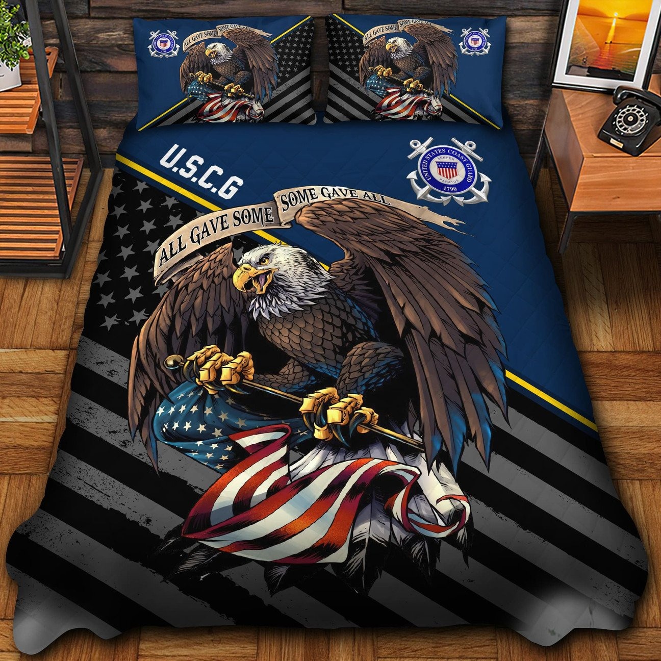 Premium US Coast Guard Veterans Quilt Bedding Set, Gifts For US Veterans, Gifts For Veterans Day